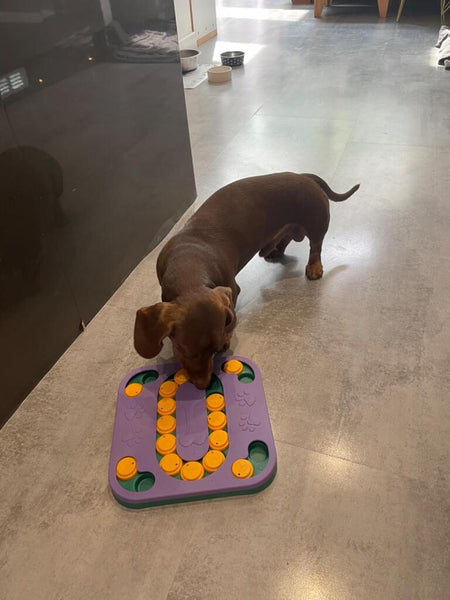 Ta interaktivna skleda je mojo psičko zabavala kar 20 minut! Čeprav ji nekaj delov ni uspelo rešiti, se je res trudila. Super za radovedne kužke, ki potrebujejo miselne izzive!
