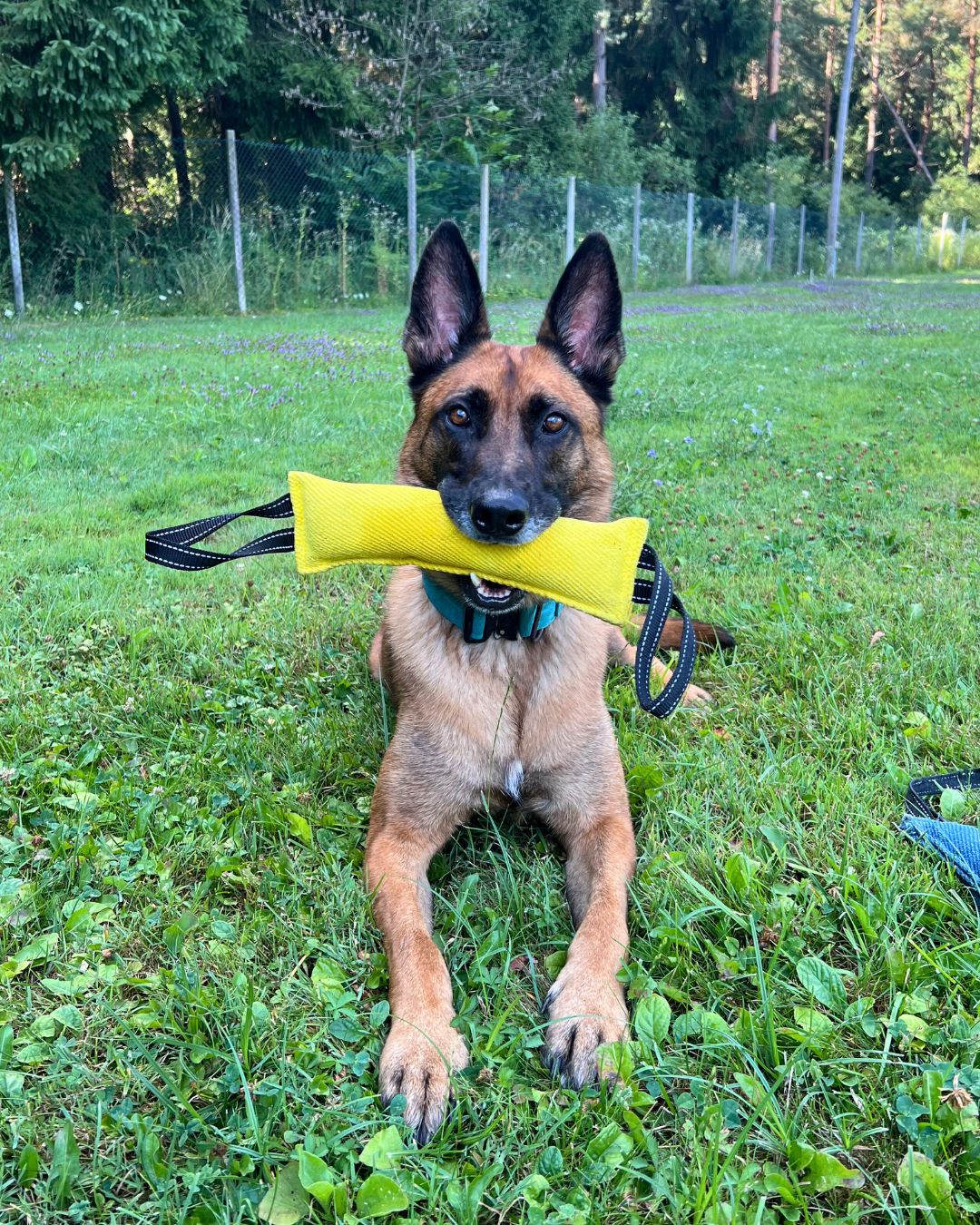 Moja Luna, belgijska ovčarka, obožuje to vlečko! Rdečo sem izbrala zaradi vidnosti, tako da jo hitro najdeva tudi na travniku. Igrača je izjemno vzdržljiva – Luna ima kar močan ugriz, ampak vlečka še vedno izgleda kot nova.