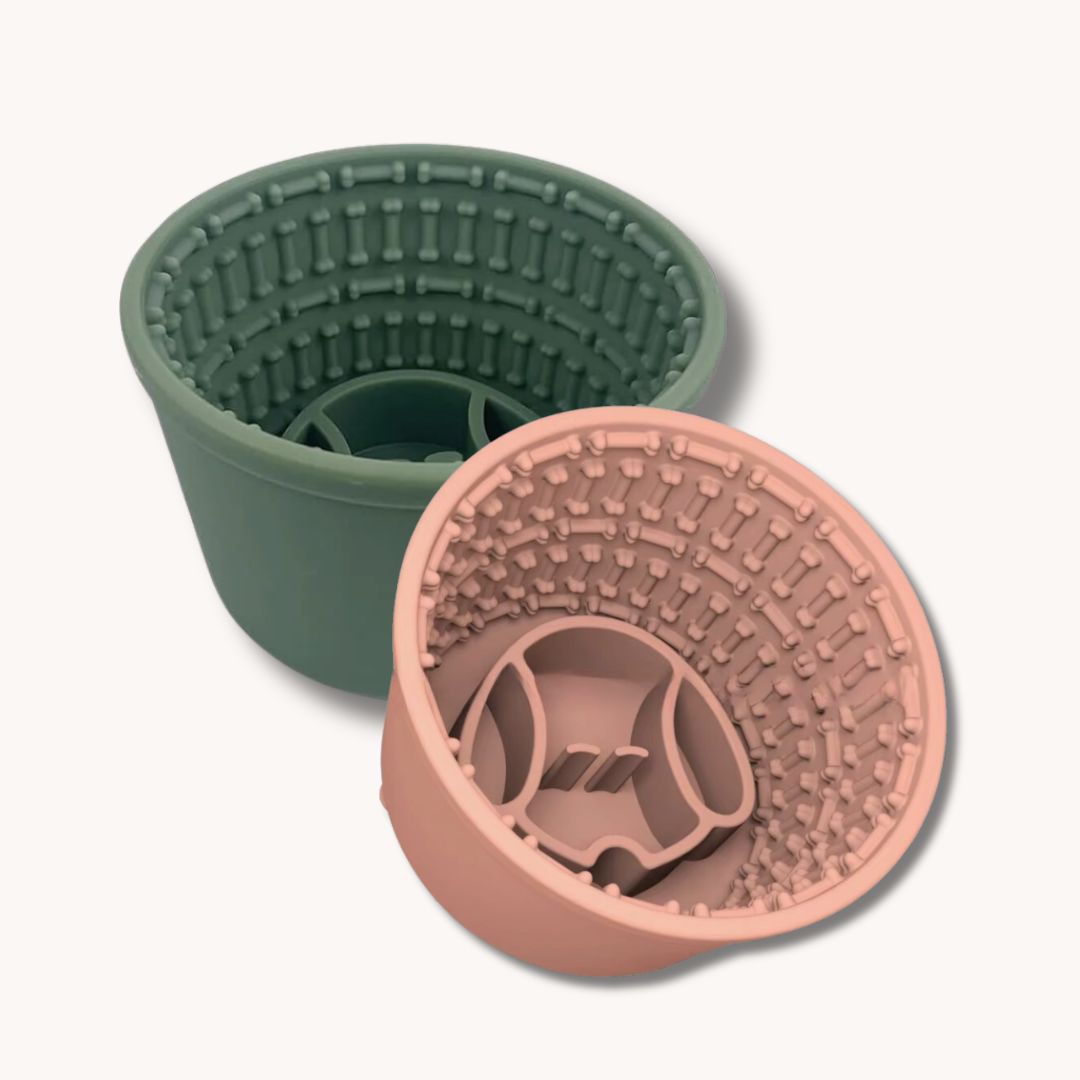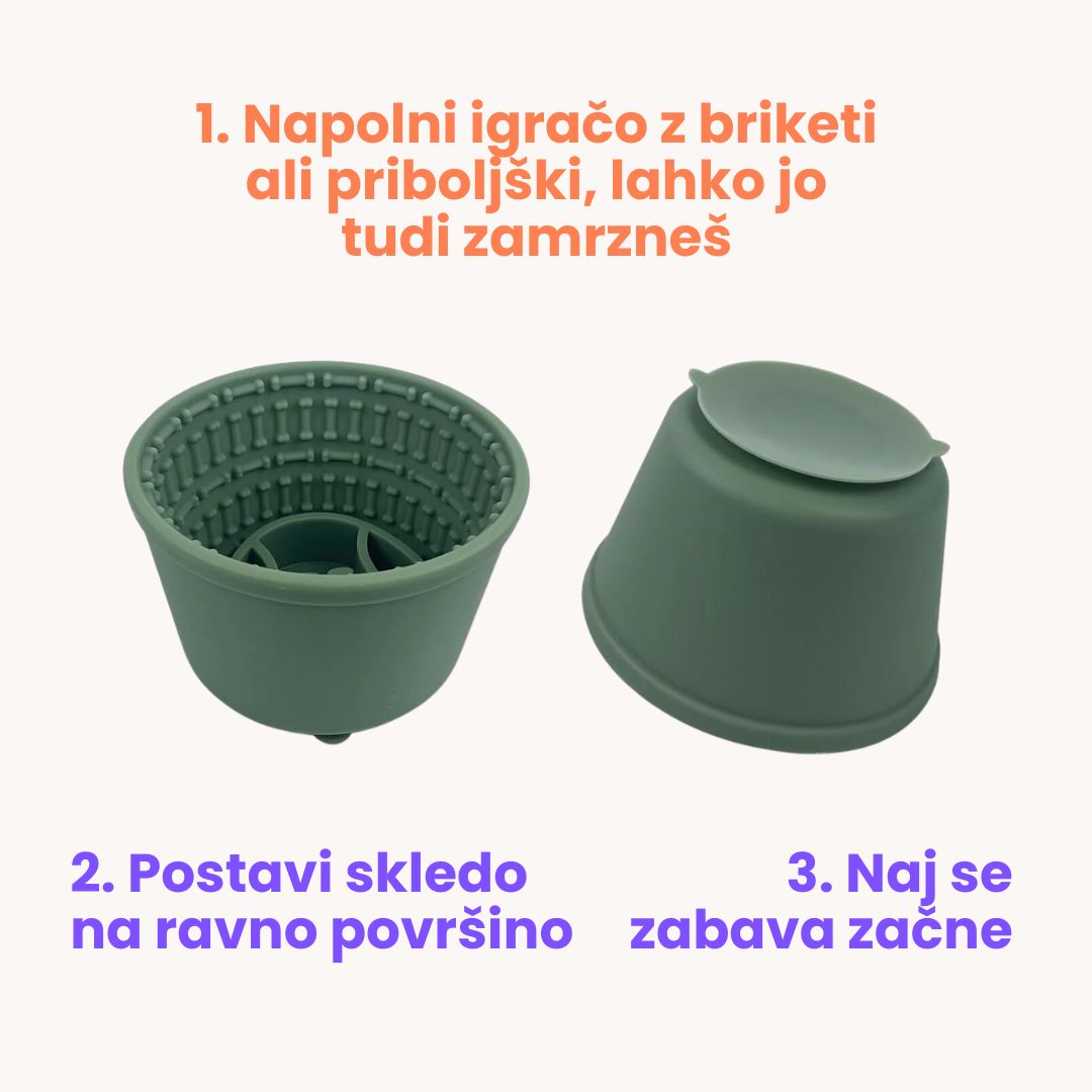 Več funkcij v eni skledi – kombinacija počasnega hranjenja in lizanja.