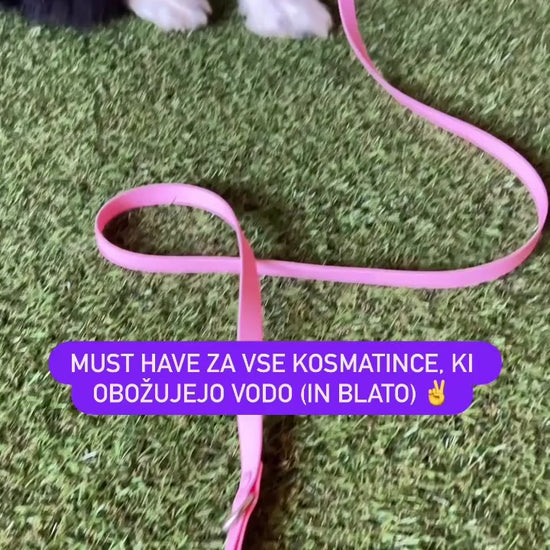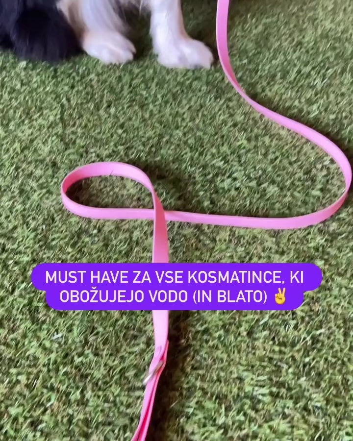 Povodec in ovratnica ne vpijata vode, kar je super za dež in blato. Hitro se obrišeta in ne zadržujeta vonja. Praktično in trpežno!