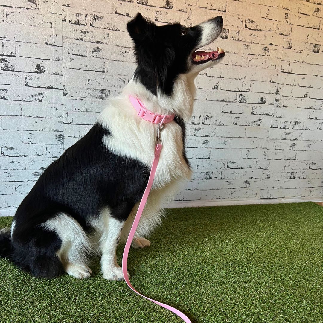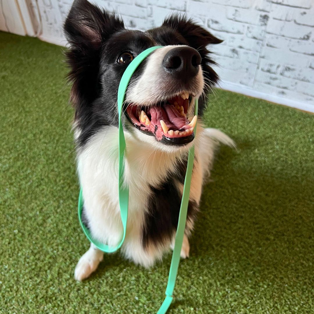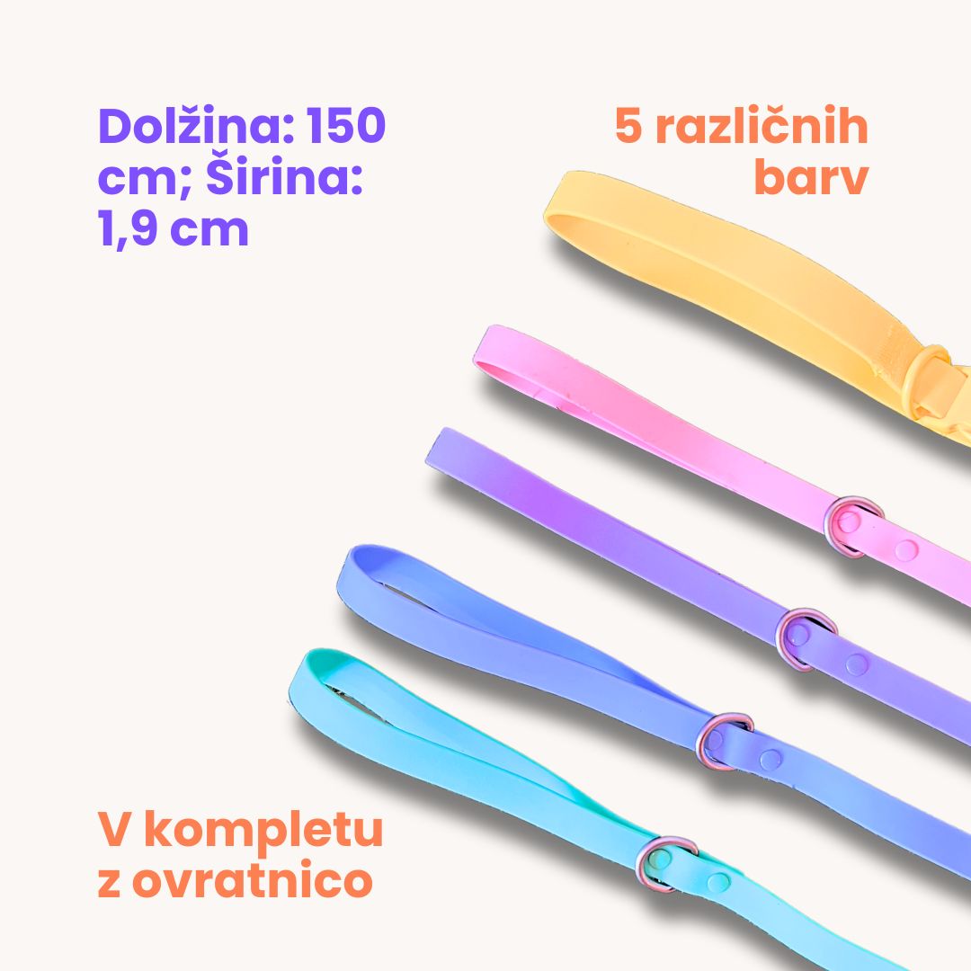 Povodec in ovratnica ne vpijata vode, kar je super za dež in blato. Hitro se obrišeta in ne zadržujeta vonja. Praktično in trpežno!